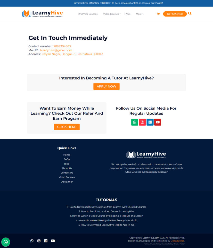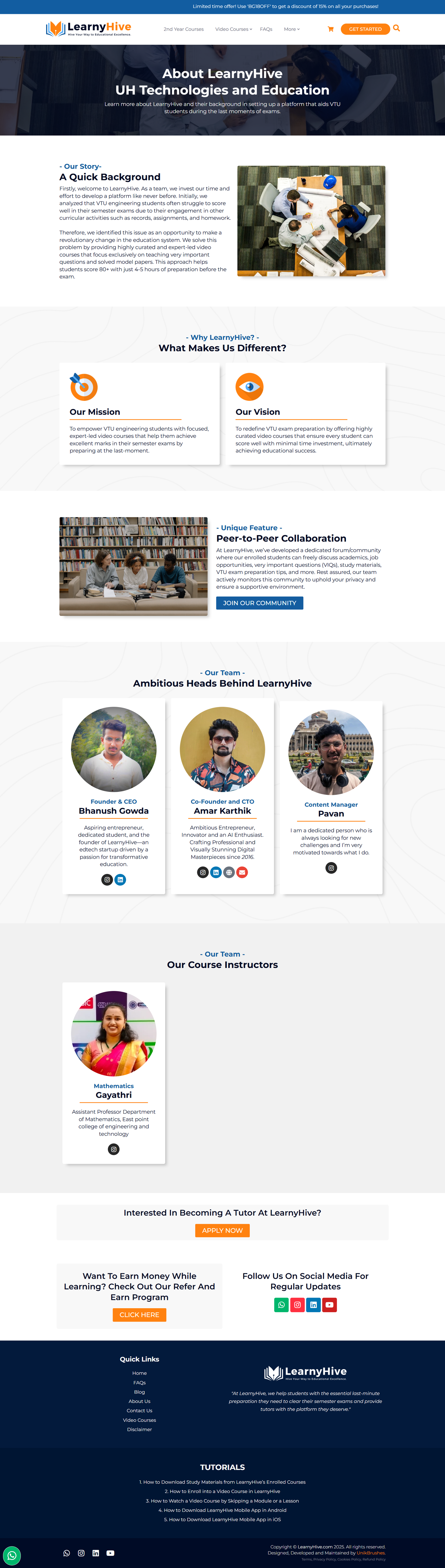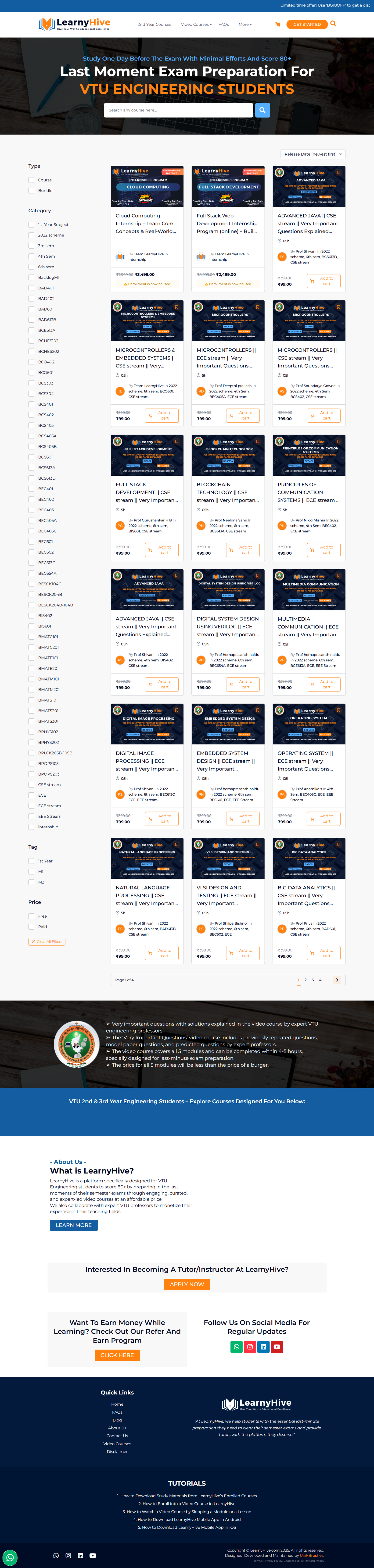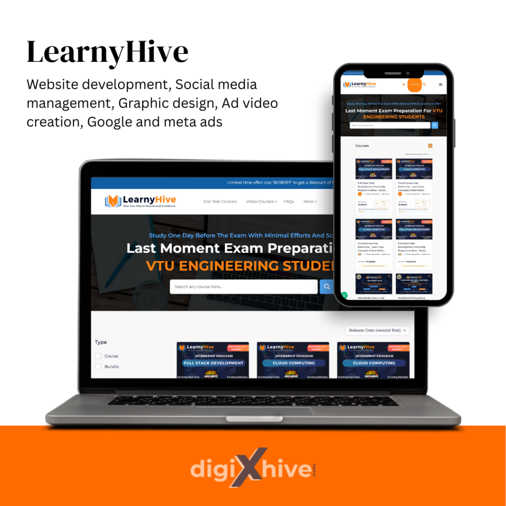 Learnyhive is an innovative edtech platform designed to help VTU (Visvesvaraya Technological University) students achieve academic excellence. The client’s vision was to create a student-friendly platform that simplifies complex subjects, offers tailored learning resources, and helps students score consistently high in exams.
